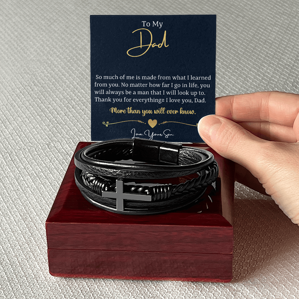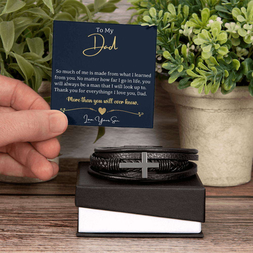 This Men's Cross Leather Bracelet is the perfect keepsake for someone special in your life. Handcrafted with care, this piece features braided vegan leather and a sleek stainless steel cross. This would make an ideal gift for your beloved partner, family members, or dear friends on special occasions like anniversaries, birthdays, or any event where you want to express your love and appreciation in an unforgettable way.